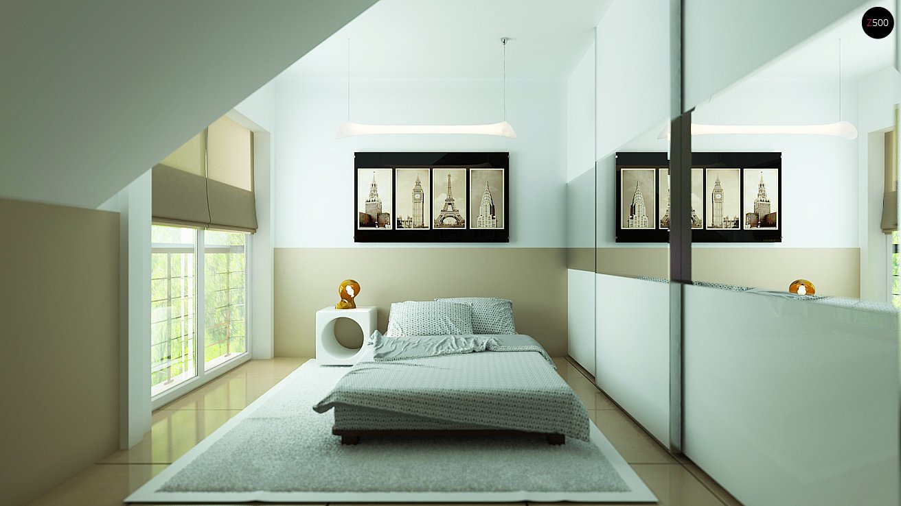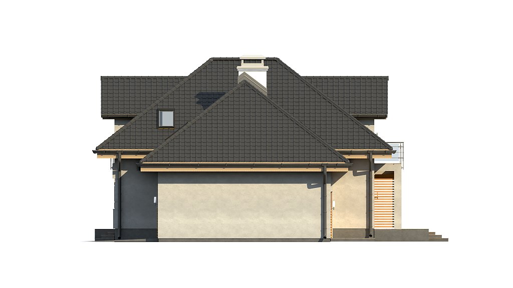 Проект Z284 представляет собой комфортный и красивый проект мансардного дома с дополнительным помещением над гаражом. Необычная и сложная конструкция кровли и современный дизайн экстерьера делают строительство такого каркасного дома уместным в любом ландшафте.