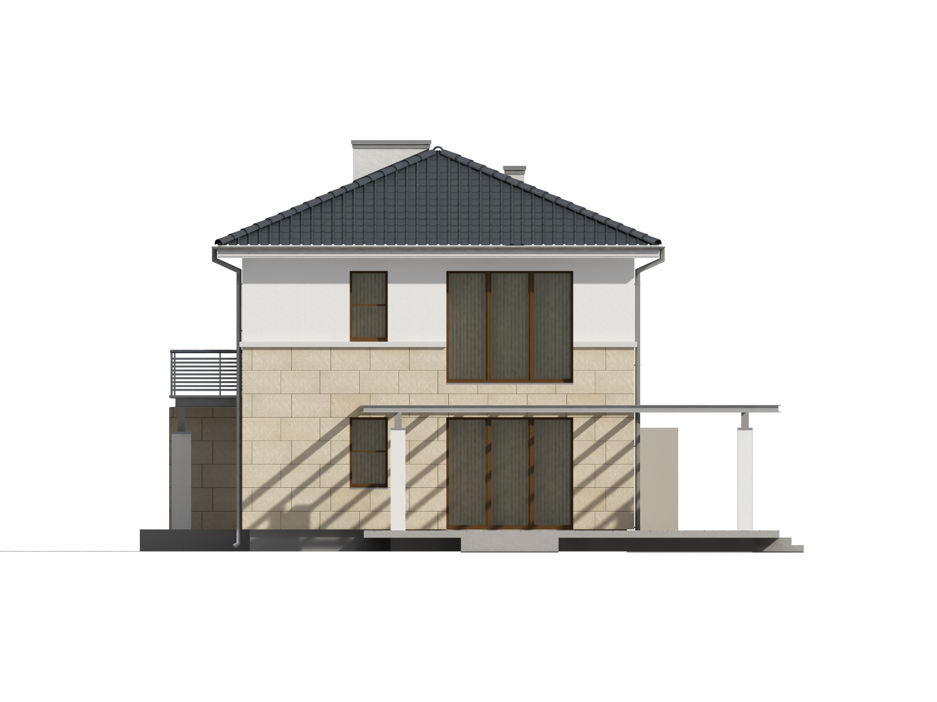 Заказать каркасный дом под ключ можно проекту по Z29, который отличается простотой линий и прекрасной террасой, украшающей второй этаж. Дизайн оформления террасы на первом этаже придает дому современности и индивидуальности.