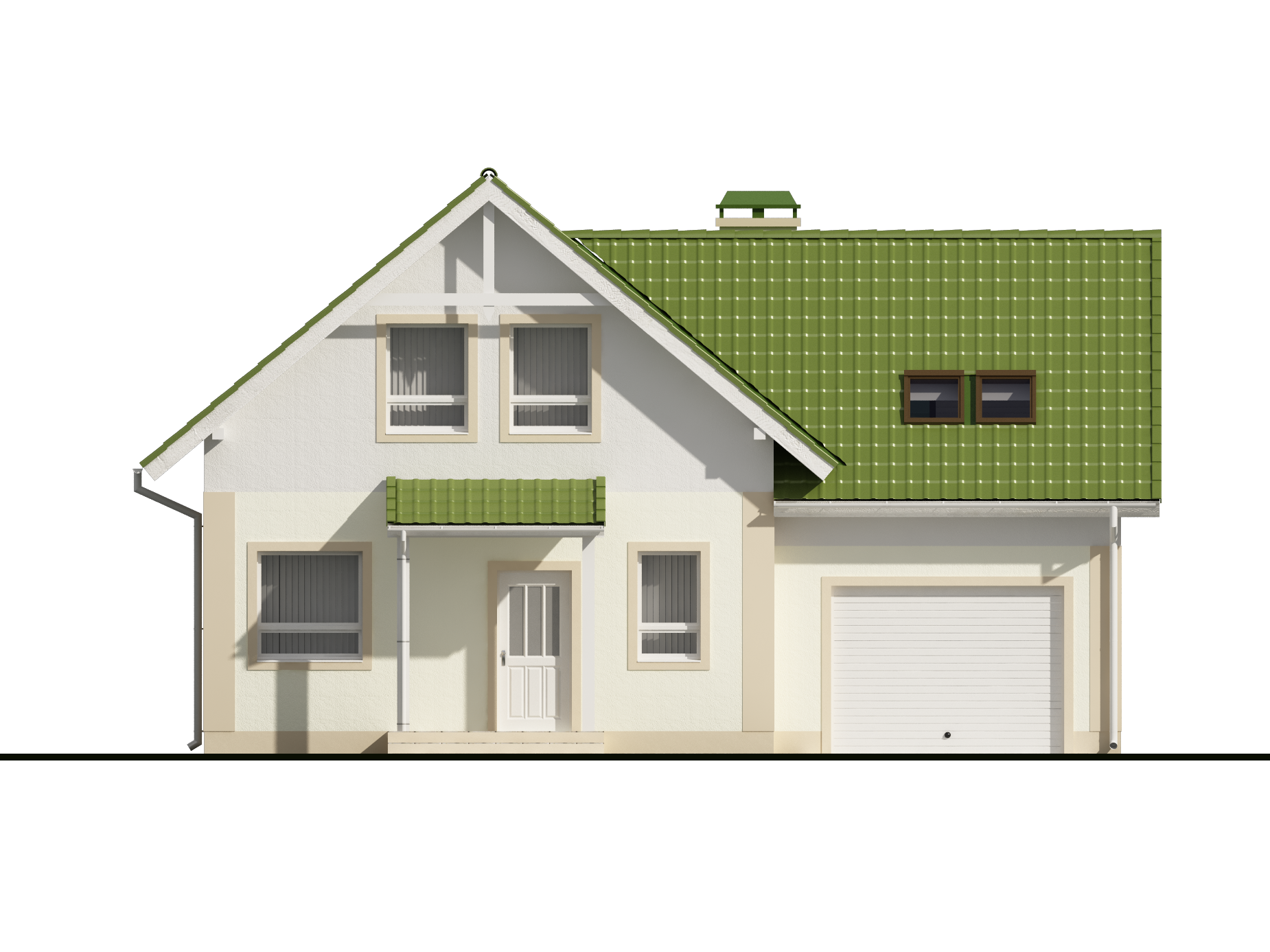 Отличающийся уютом и функциональностью Z43 — проект дома с мансардой и гаражом имеет простую, но удобную планировку и интересную «Т» — образную форму.
