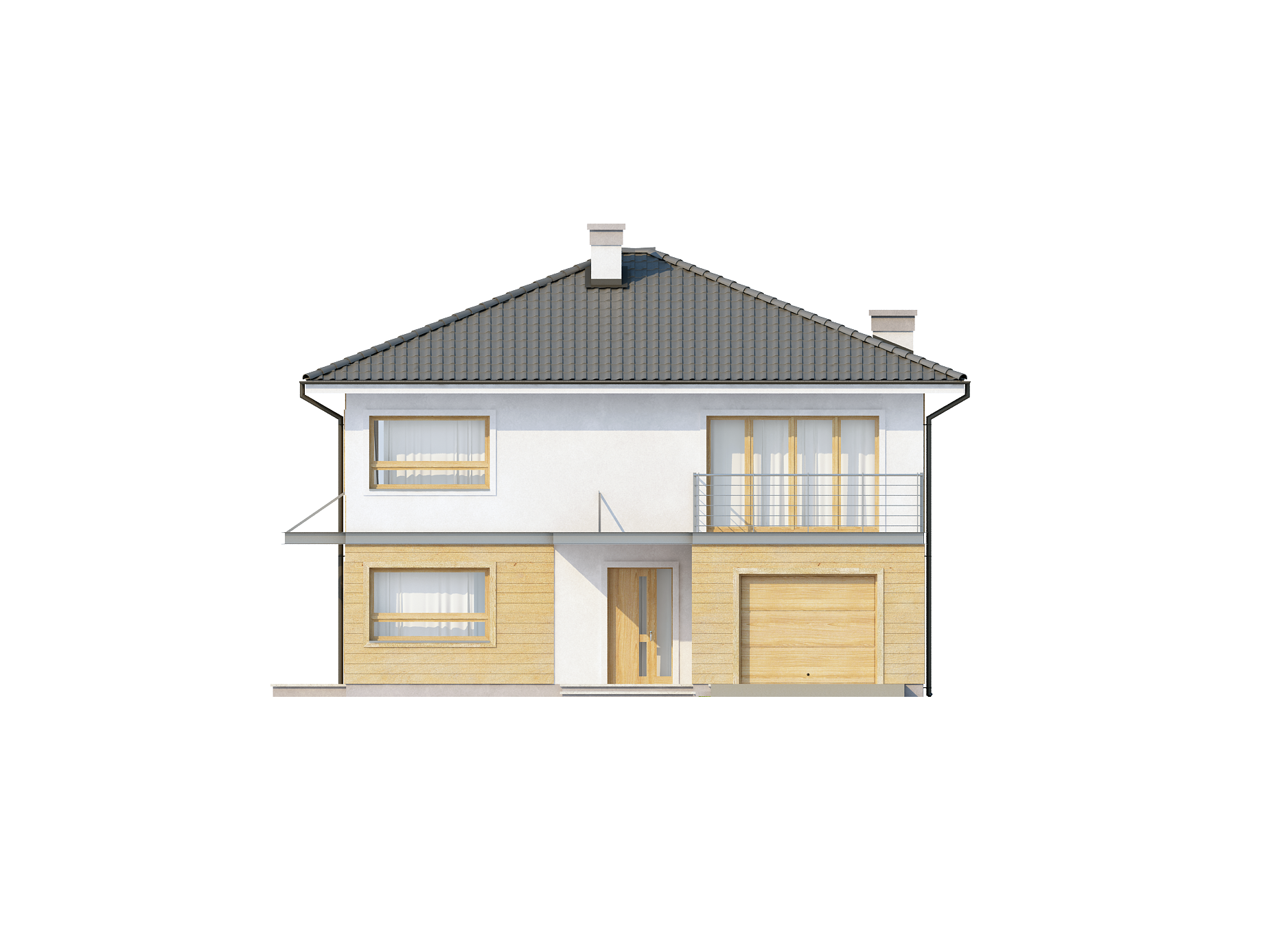 Zx7 представляе собой проект каркасного двухэтажного коттеджа с гаражом на 2 машины. План дома двухэтажного Zx7 предусматривает комфортные и современные интерьерные решения.