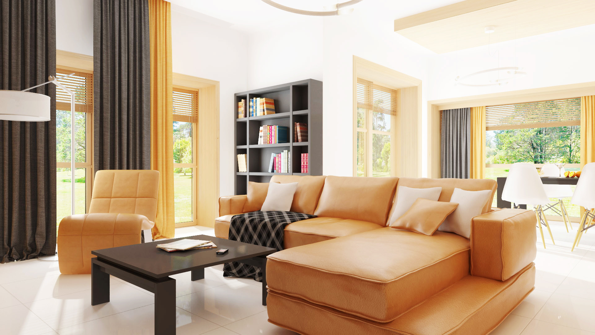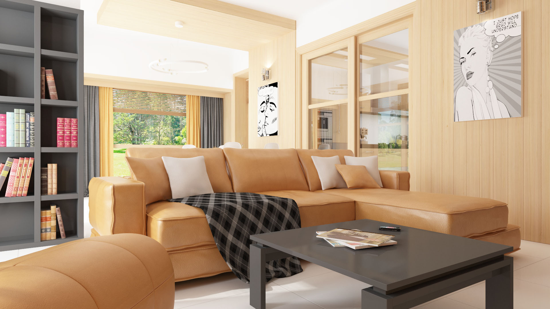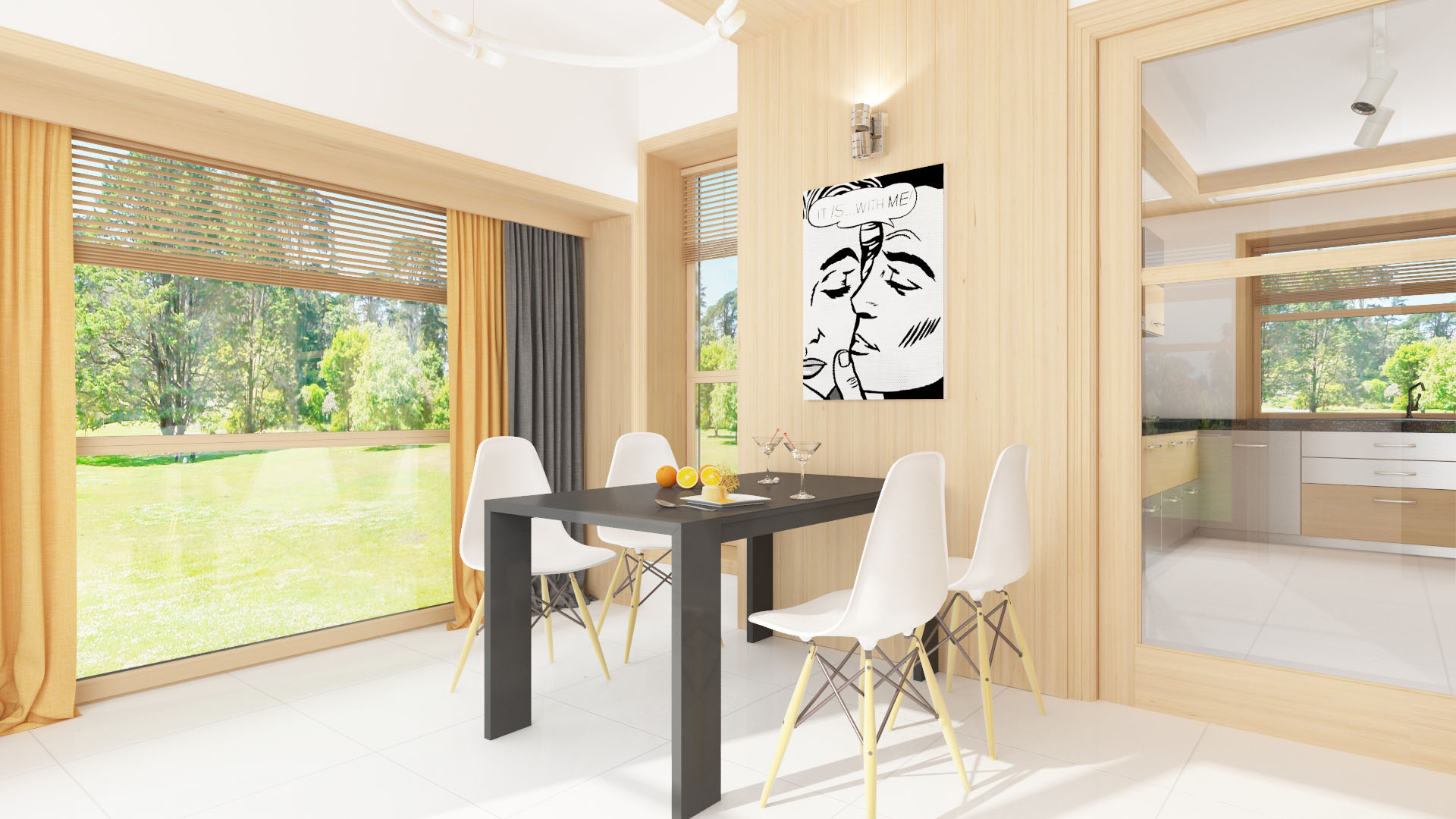 - Дневная зона удалена от посторонних глаз и располагается в глубине дома. Столовая, расположенная в эркере, имеет выход в сад.