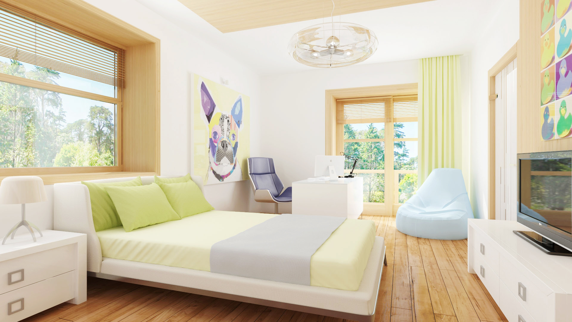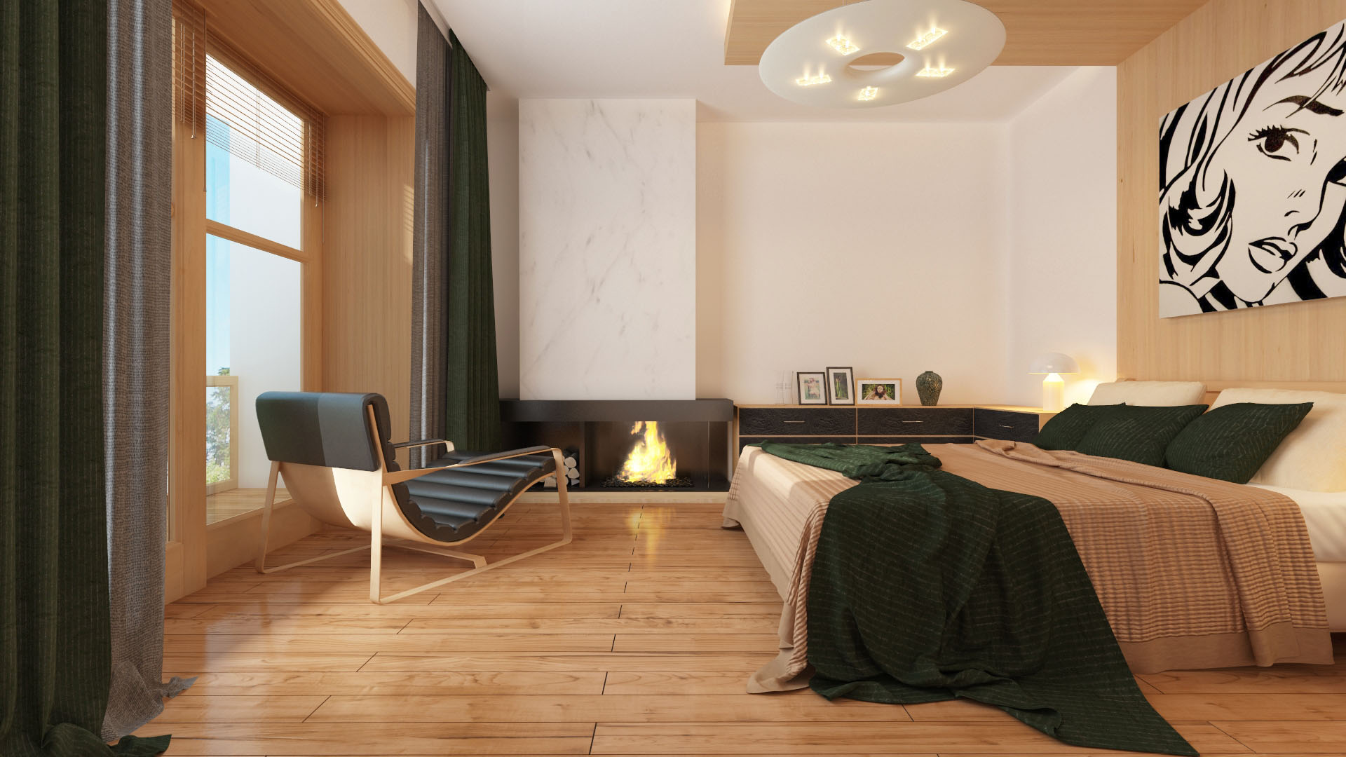 - Спальная зона вмещает три спальни и общую ванную. Комнаты наделены санузлом, балконом и лоджией соответственно.
