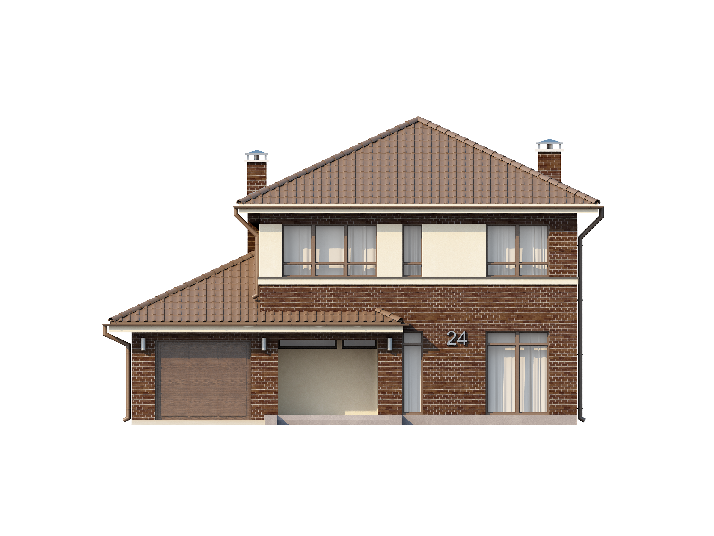 Тем, кто ищет двухэтажныекаркасные дома, компания «Профикаркас» предлагает обратить внимание на проект Zx24 - дом с гаражом, имеющий элегантную наружность, подчеркнутую классическими формами, сдержанной отделкой и панорамными окнами.