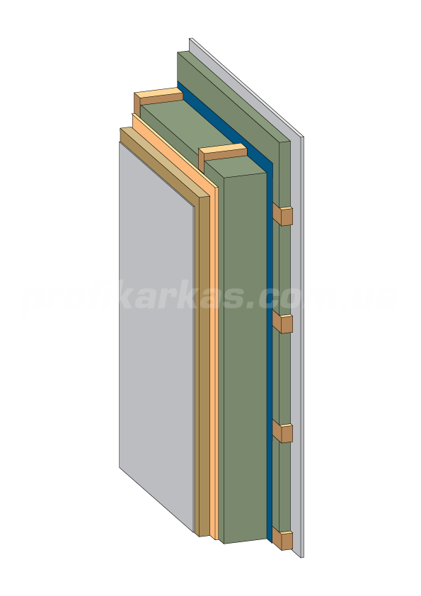 - Обрешетка 45 мм со слоем минеральной ваты 50 мм