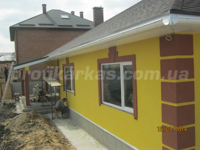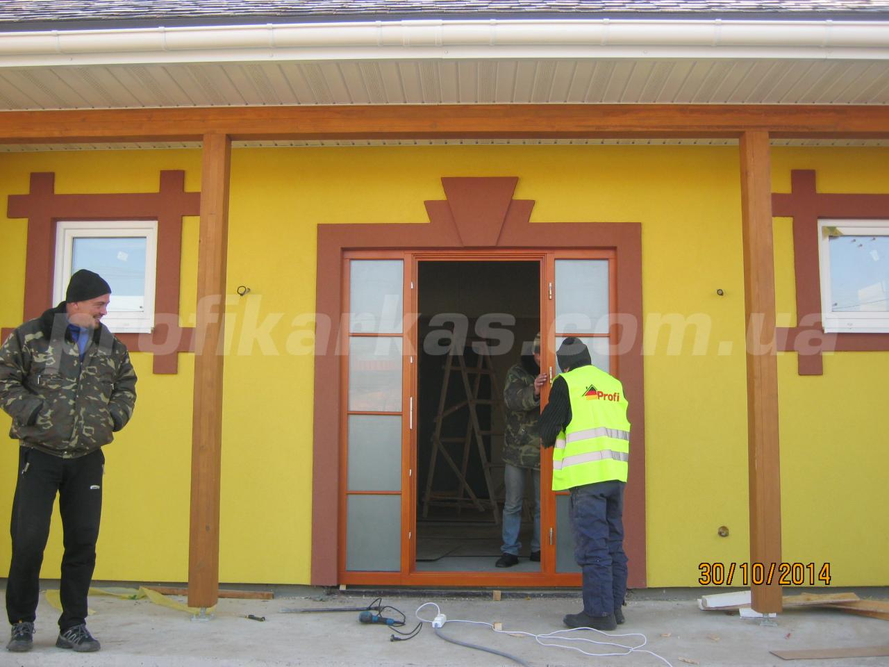 Строительство каркасного дома Z26 выходит на финишную прямую. Завершены фасадные работы, завершен монтаж водосточной системы, проводятся электро-технические работы, монтируются двери.