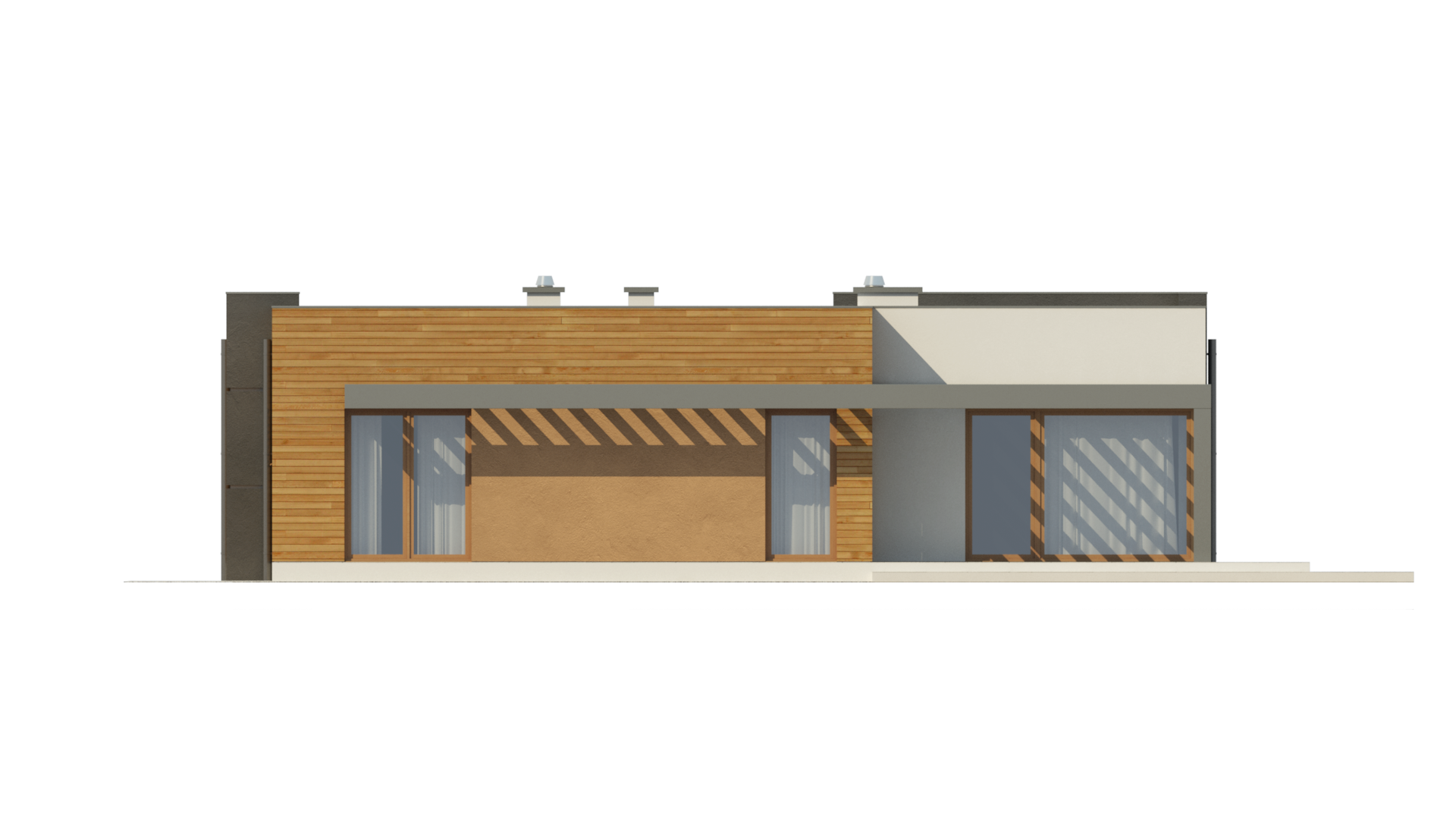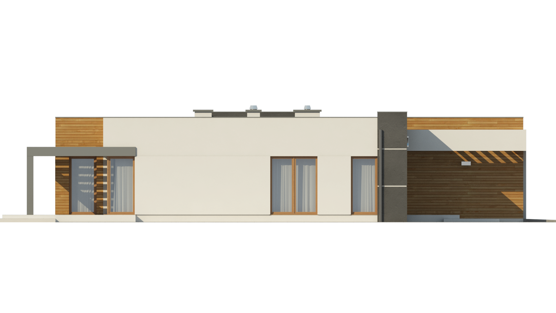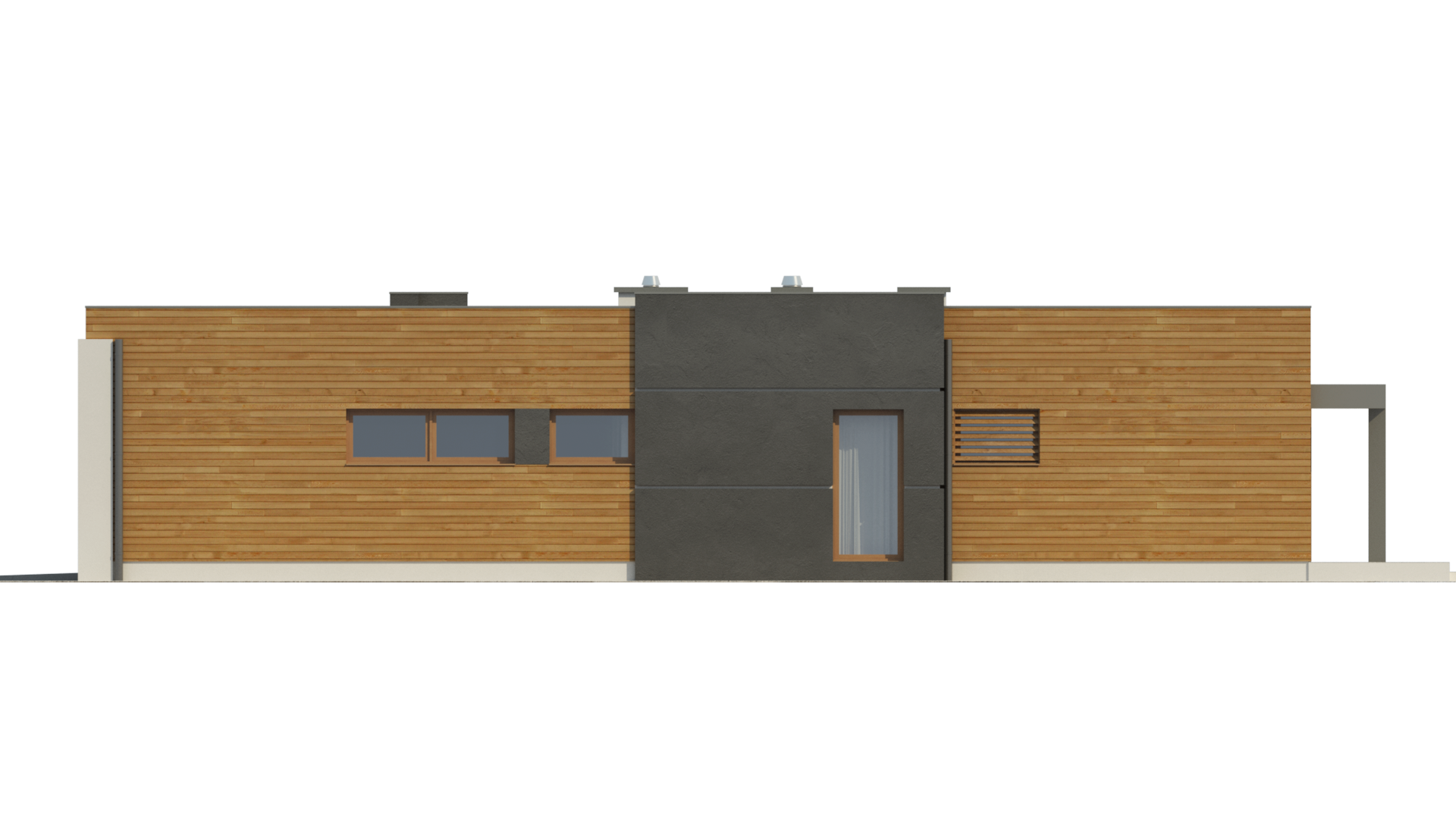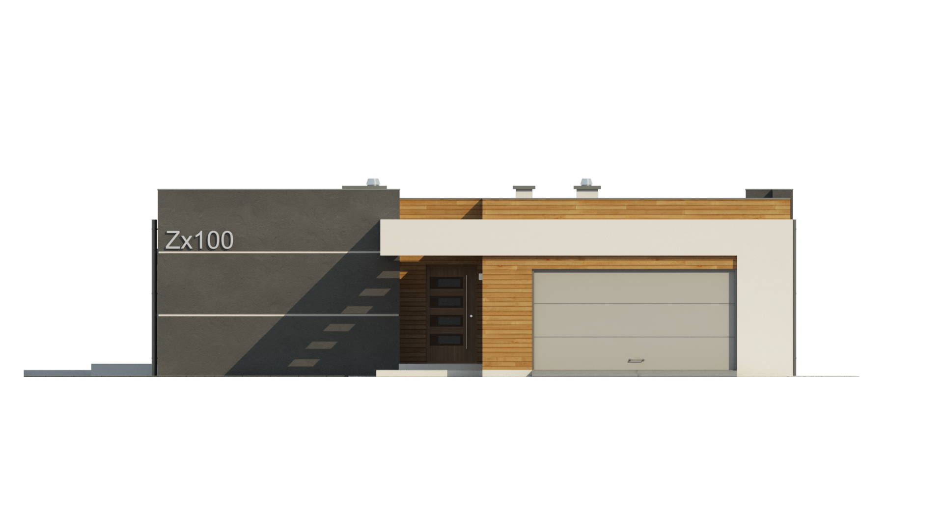 Проєкт Zx100 є одноповерховим будинком із плоским дахом в стилі мінімалізм. Такий каркасний будинок сподобається забудовникам різних поколінь і буде доречним в будь-якому пейзажі.