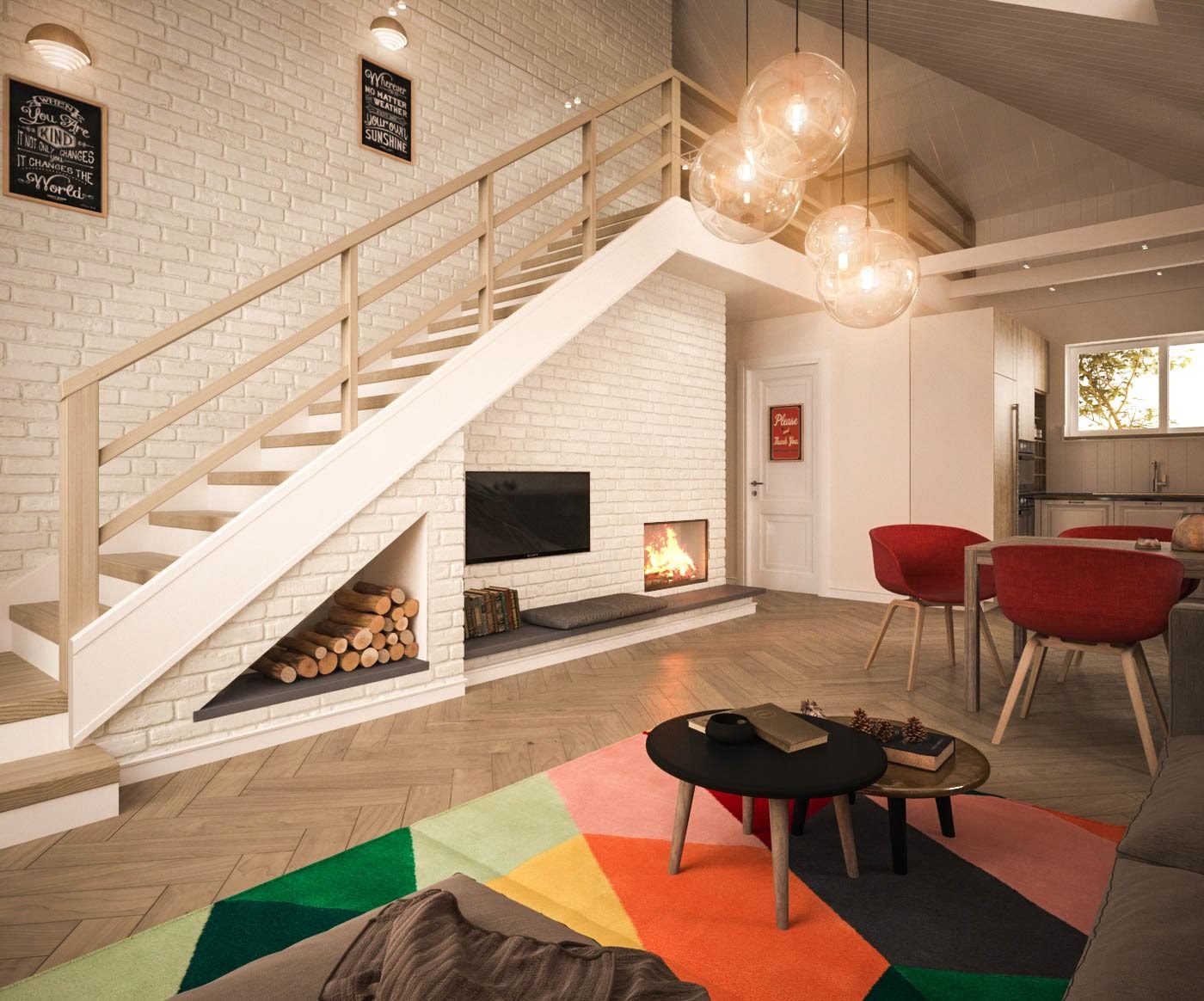 - Зона для відпочинку та сну чітко відокремлена від загальної частини будинку кухнею і їдальнею;