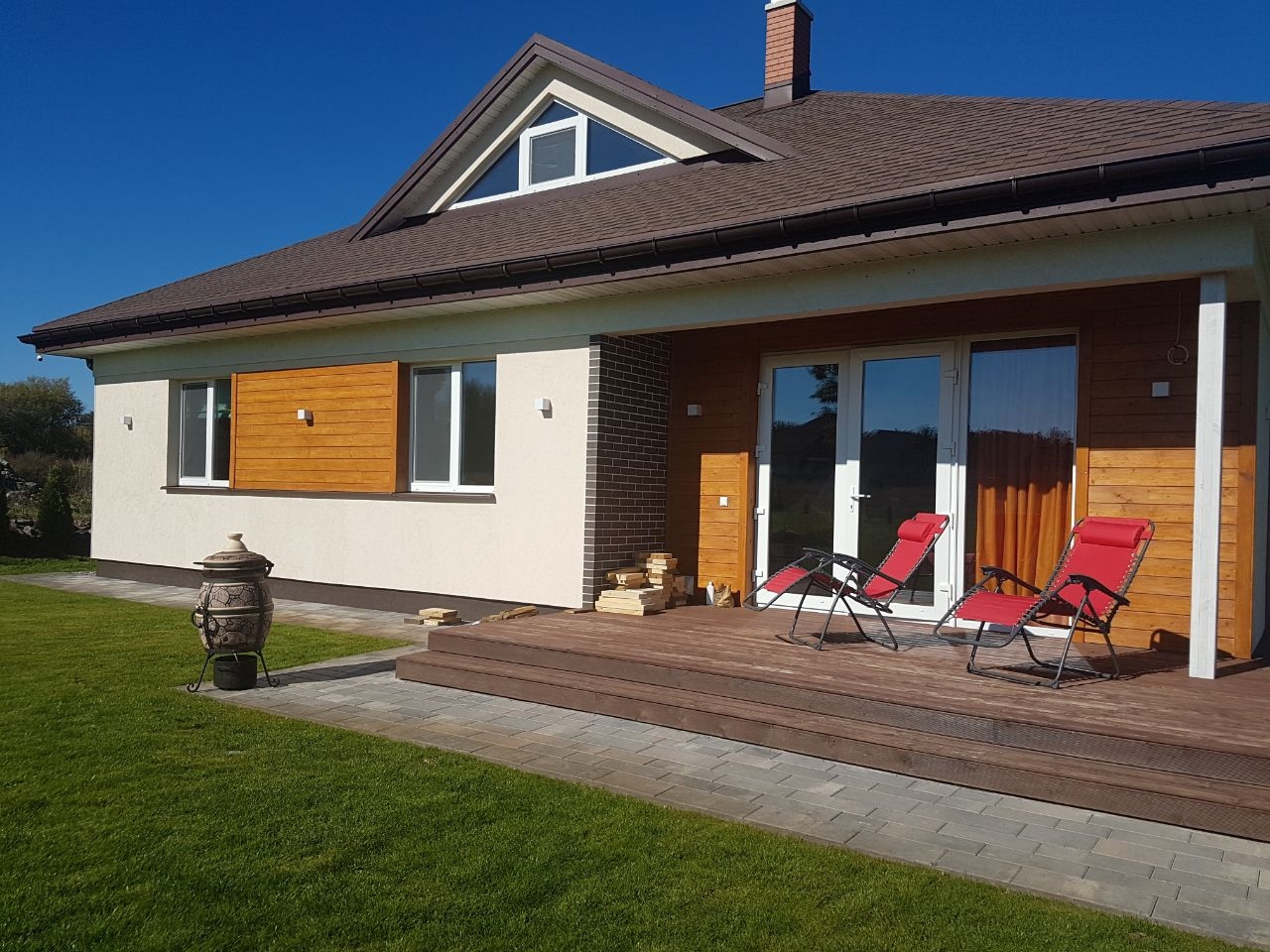 - ceramic tiles on facade on request - wood siding on facade on request Finish plaster (two colors) on walls - ceramic tiles on facade on request - wood siding on facade on request ?