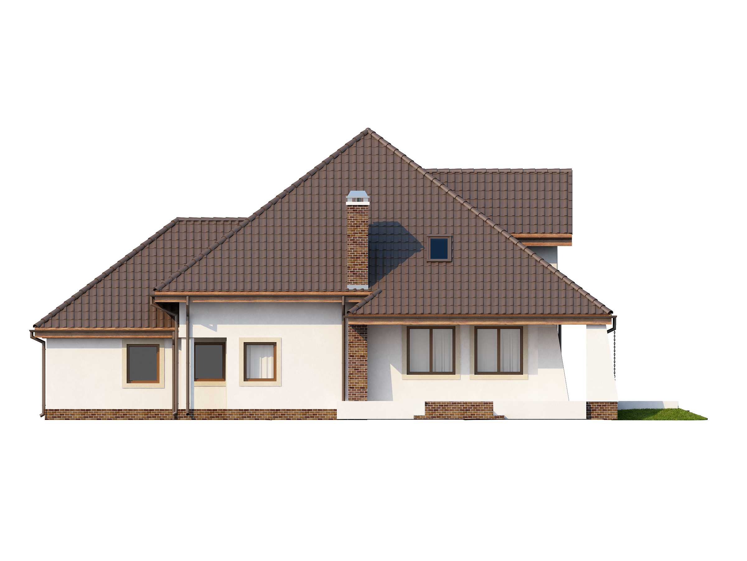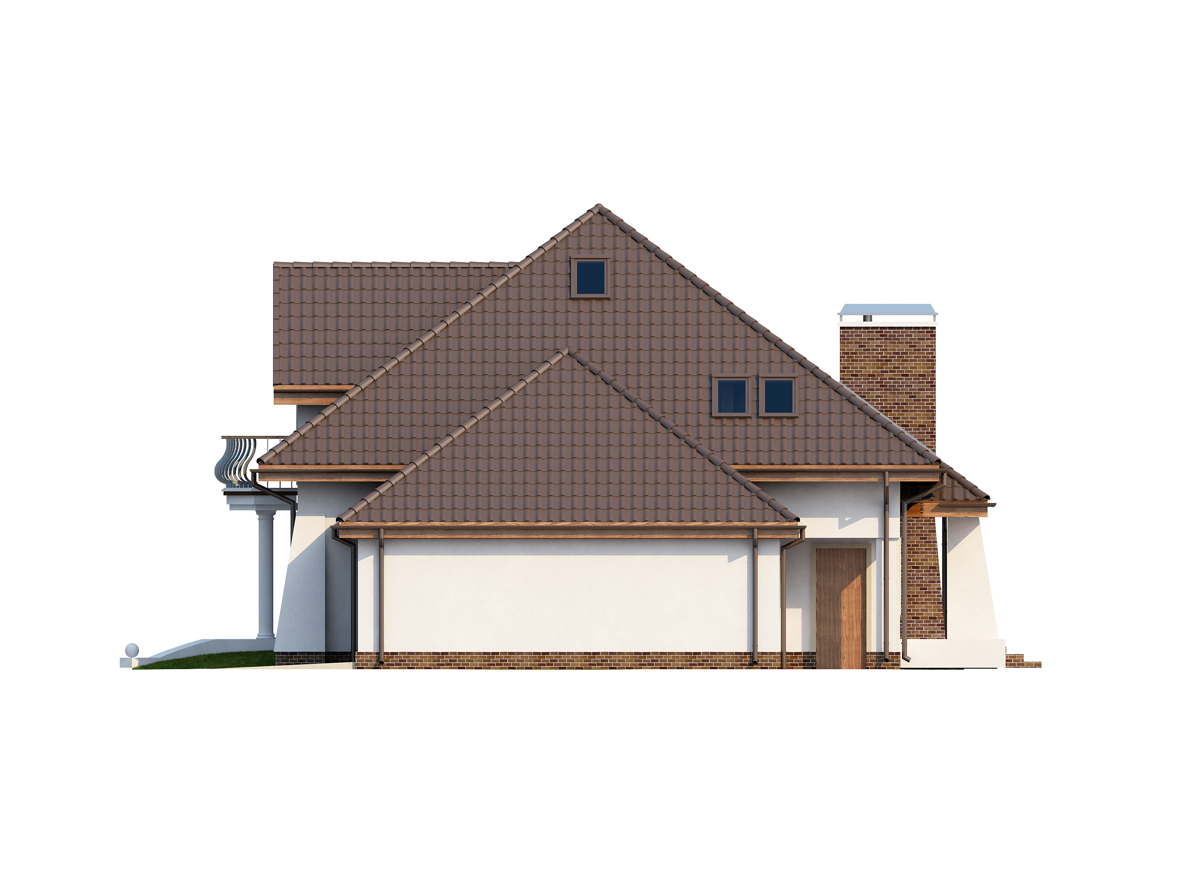 Зручний будинок Z109 своїм класичним стилем, який підкреслюється балконом і красою мансардних вікон, прикрашає проекти мансардних будинків із гаражем у нашому каталозі. Благородний образ будинку створюється за допомогою аркади зі скошеними елементами і кутами.