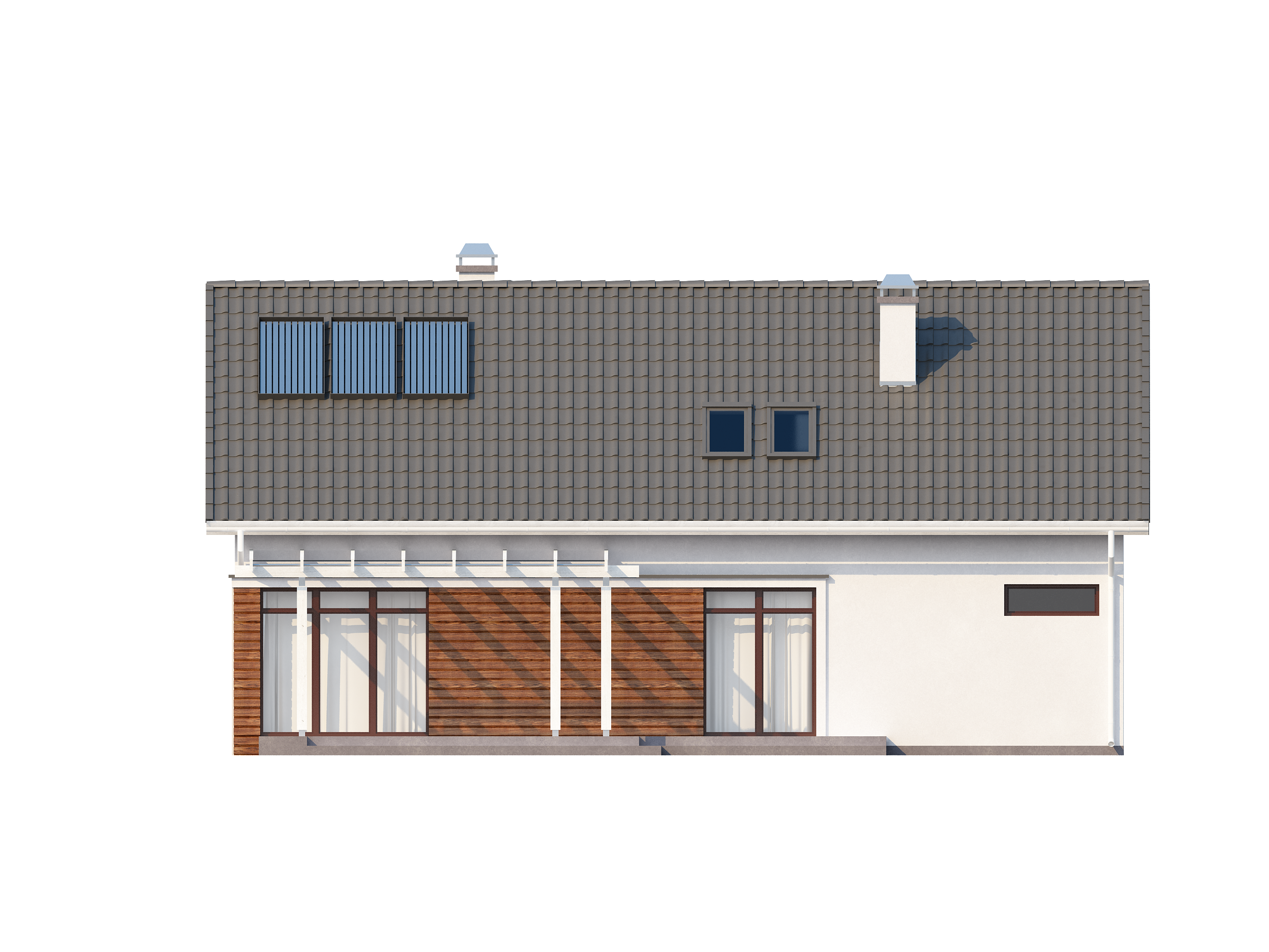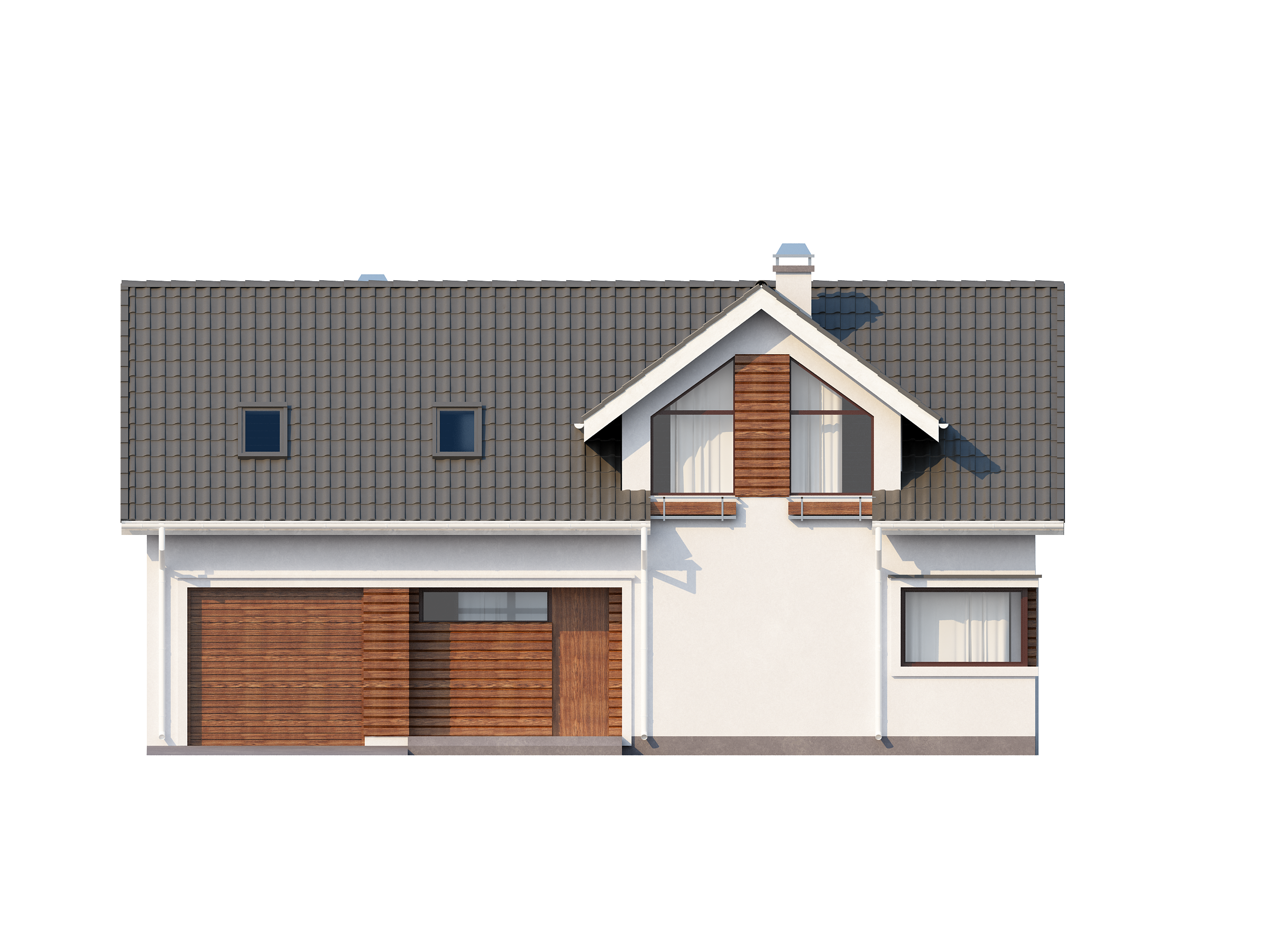Проєкт будинку з гаражем Z122 здивує своїми особливостями — другим світлом у вітальні та мансардним привабливим вікном.