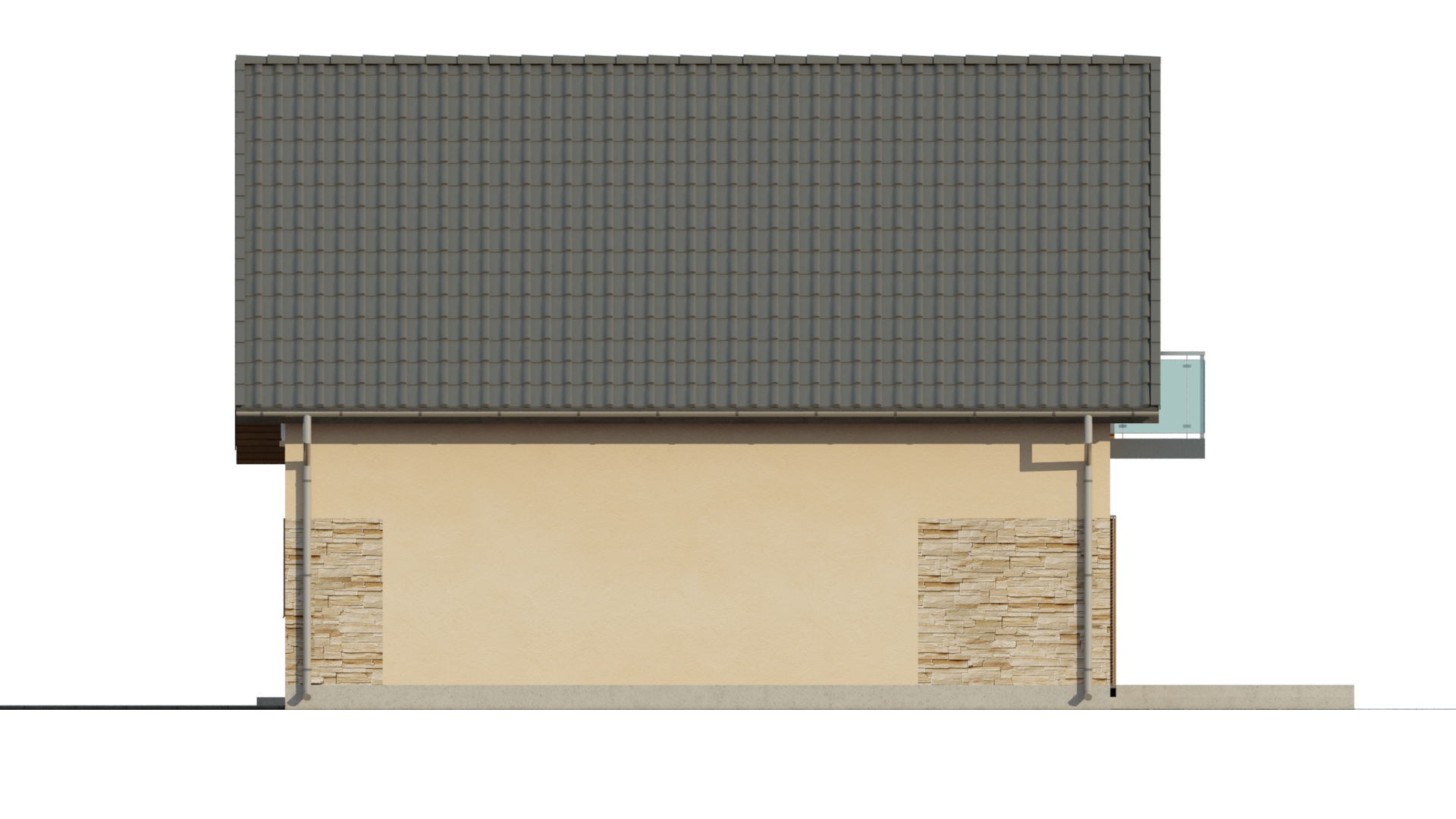 - Будинок підходить для будівництва на вузькій ділянці завдяки глухим бічним стінам.