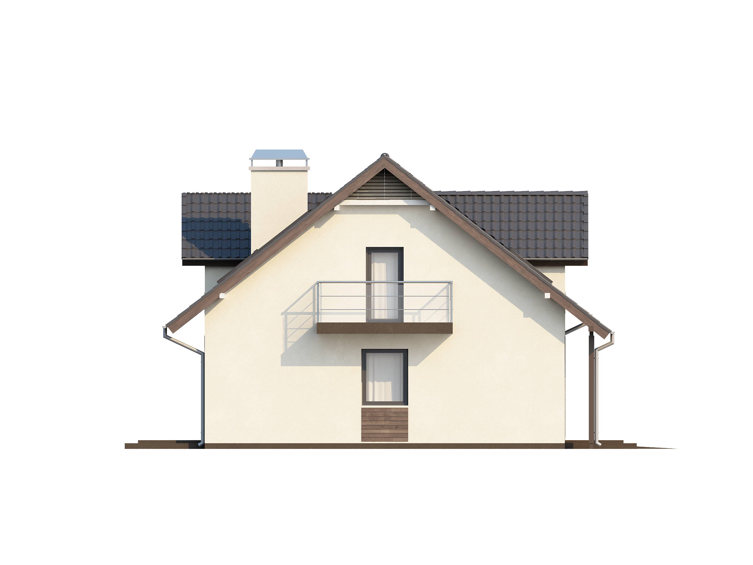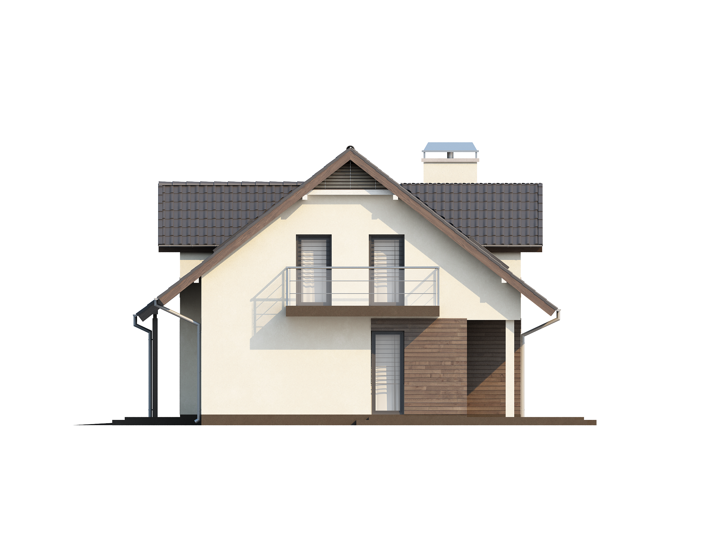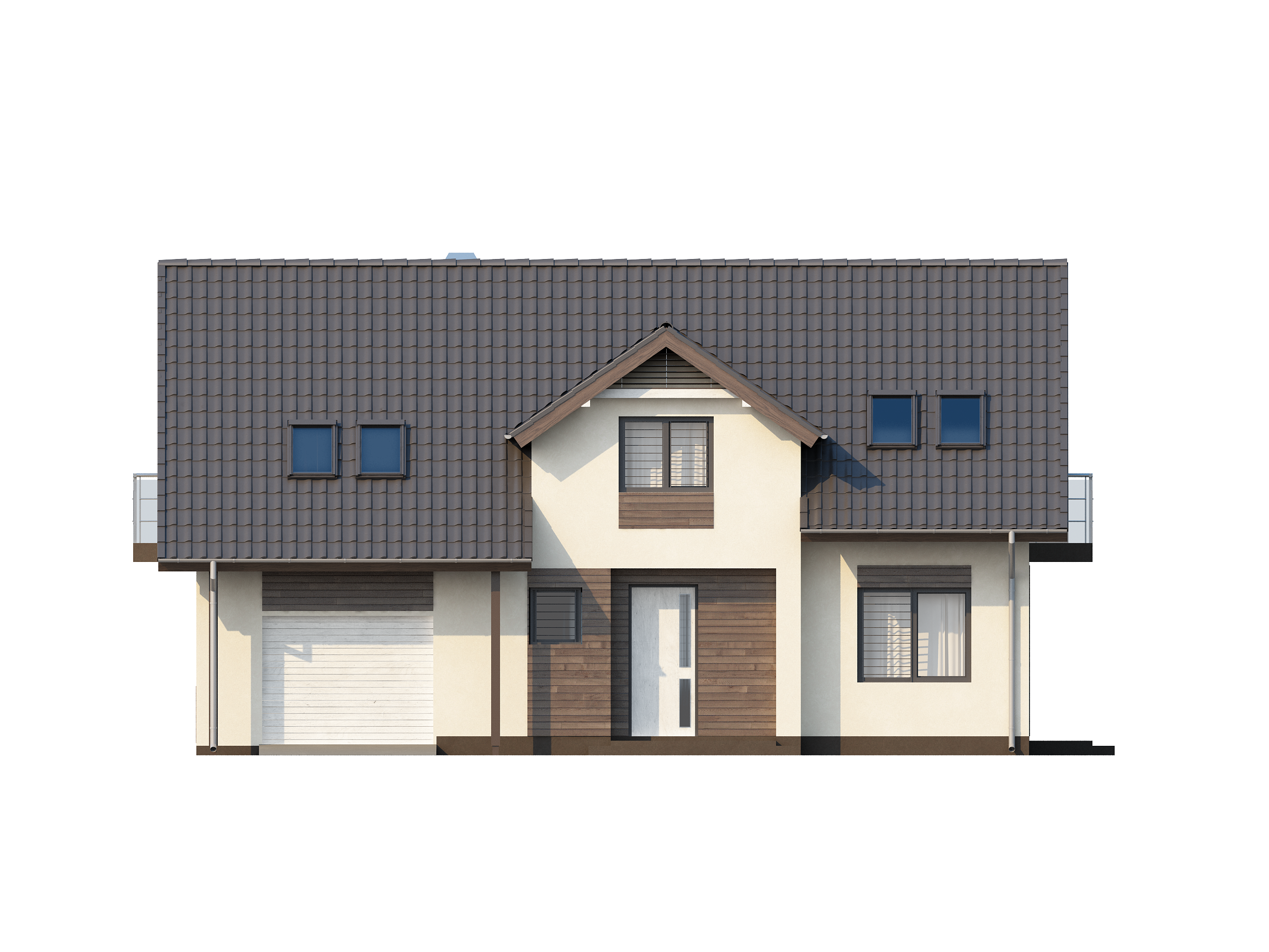 Z172 представляє у нашому каталозі одноповерховий приватний будинок із мансардним поверхом та вбудованим гаражем. Для того, щоб підкреслити традиційний характер, яким наділений цей каркасний будинок, матеріал обробки обраний у вигляді натурального дерева.