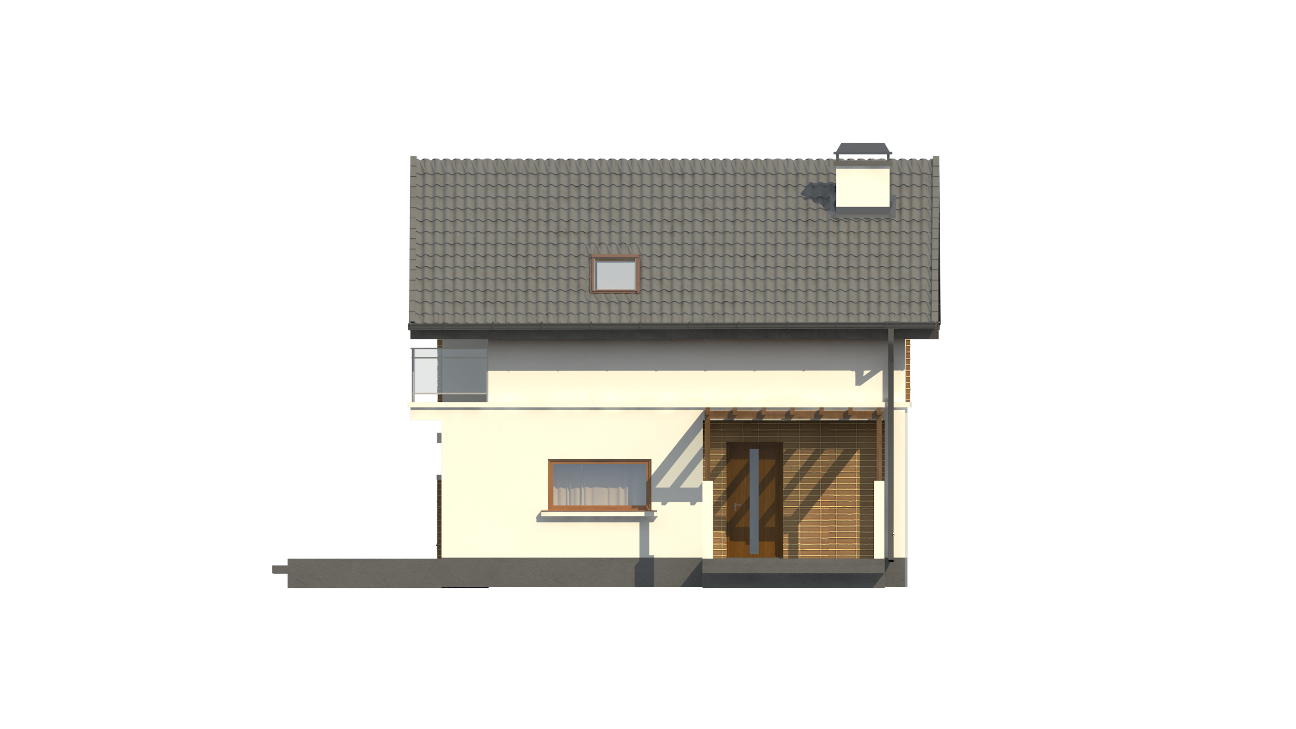 Каталог одноповерхових будинків із мансардою поповнився проектом Z248, за яким зводяться модульно-каркасні будинки, що мають додаткову кімнату в межах першого поверху і аттикові високі стіни на мансарді.