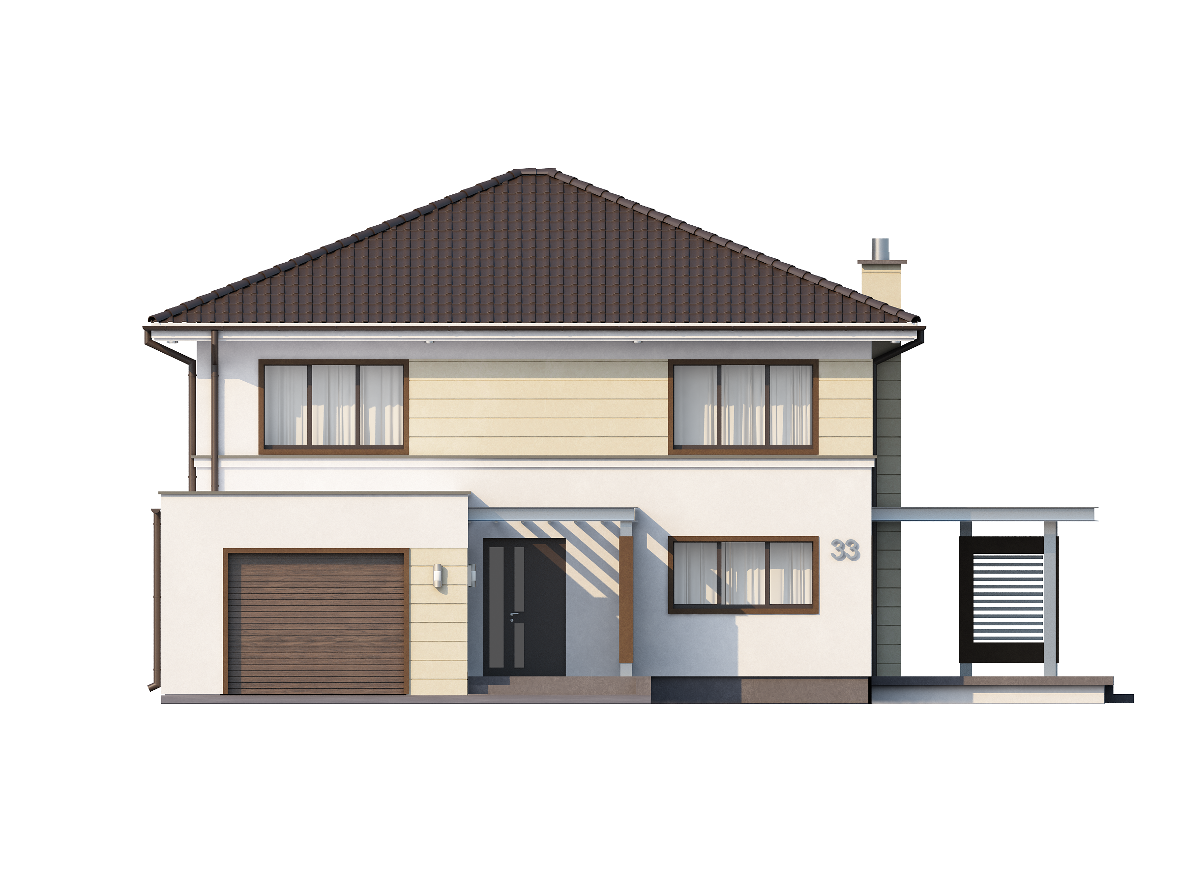 Zx33 є проєктом комфортного двоповерхового будинку, оснащеного другим світлом над вітальнею. Просту форму, чотирьохскатний дах і елегантний дизайн фасаду оцінять прихильники як класичного, так і сучасного стилю архітектури.