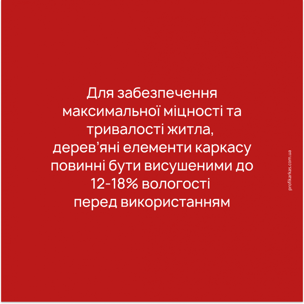 Тому, для забезпечення максимальної міцності та тривалості житла, елементи каркасу будинку повинні бути повністю висушеними перед використанням.