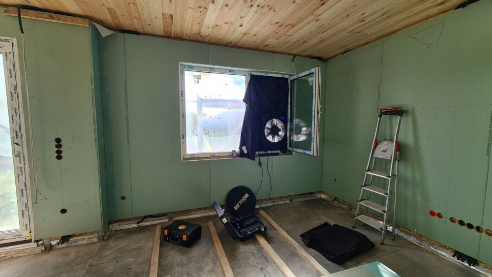 Blower door test проводять наприкінці процесу будівництва, коли встановлені вікна та захисна обшивка без фасадних робіт. Це чудовий час, щоб дізнатися остаточні цифри та виправити проблеми, якщо вони є, поки основний повітряний бар’єр ще доступний для роботи з ним.