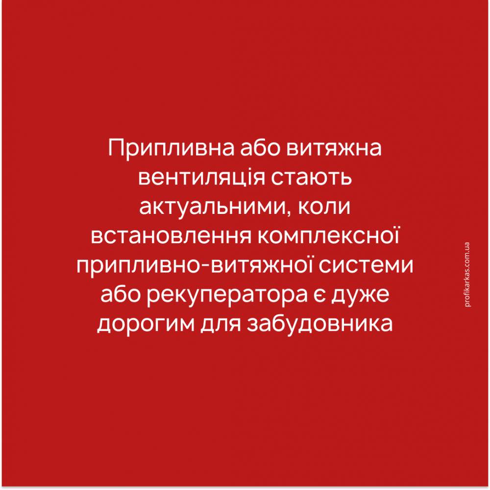 Припливна або витяжна вентиляція стають актуальними, коли природна циркуляція повітря не забезпечує достатнього рівня комфортного мікроклімату, а встановлення припливно-витяжної системи або рекуператора є дуже дорогим для забудовника. Припливно-витяжні пристрої є складнішою системою, оскільки вентилятори встановлюються як на каналах, так і на витяжних отворах. Це вимагає окремого проєктування та обладнання всієї системи повітряних потоків.