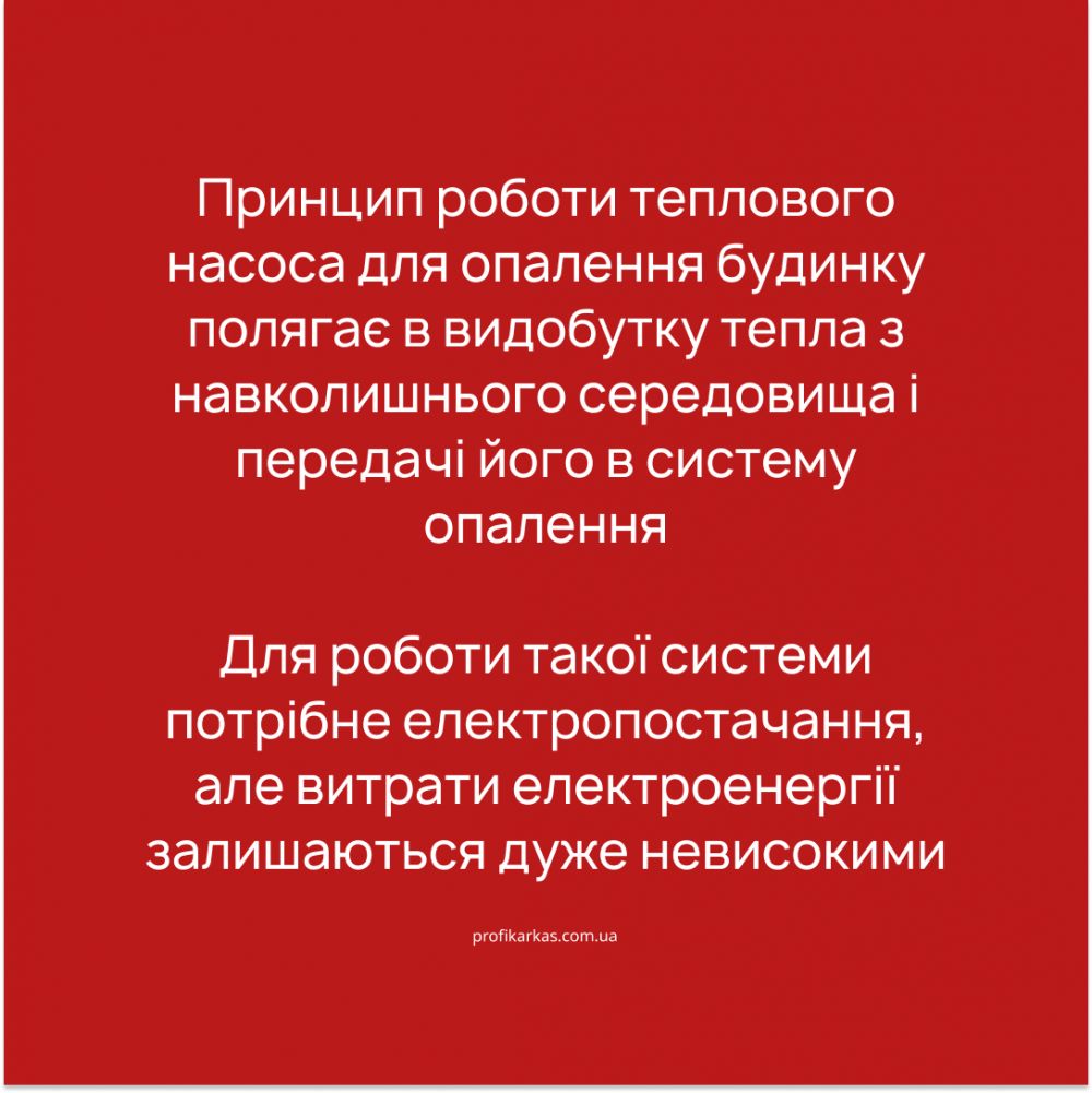 Тепловий насос працює, використовуючи теплову енергію з навколишнього середовища (повітря, ґрунт, вода) для нагрівання будинку. Він використовує мало електроенергії, оскільки основну частину енергії отримує з природних джерел. Це робить його екологічно чистим способом опалення, оскільки він має низький викид вуглекислого газу і зменшує залежність від газу та нафти.
