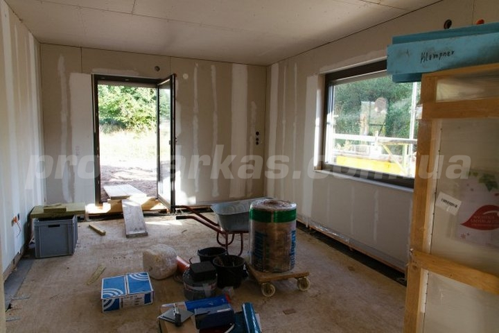 "Вивчаючи в інтернеті, що таке збірні будинки, як люди будують навіть із глини та палиць, я вирішив викласти розповідь про власне будівництво. Майже всі роботи виконувала фірма, що не дуже бюджетна за вітчизняними мірками, але досить прийнятна для Німеччини. Основна маса родичів далеко, а я весь час зайнятий роботою, тому я плачу, а фірма будує.Проект каркасного будинку був розрахований на німецькі норми енергоефективності.Підрядником при будівництві стала відома в Німеччині компанія з 60-річною історією.Загалом, я вирішив не ризикувати!