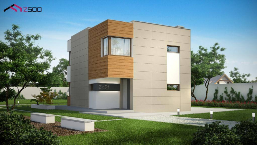 Світлий верх та темний низ. Такі рішення притаманні сучасній архітектурі. Основний акцент сприйняття спрямований на стіни, обробка яких має бути максимально виразною. Дах у цьому випадку не привертає уваги і просто розчиняється у висоті. Додатковий ефект досягається контрастним виділенням вікон та дверей.