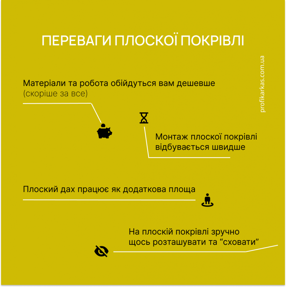- Обслуговування плаского даху зручніше та простіше, за тією самою причиною.