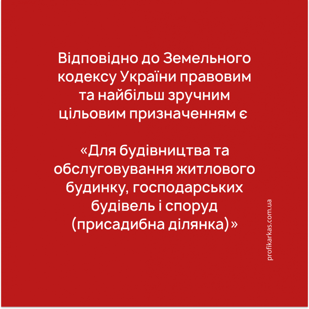 Звичайно, не всі земельні ділянки однаково підходять для будівництва житлового будинку. Можливість будівництва саме житлової споруди має бути визначено документами на ділянку. Відповідно до Земельного кодексу України правовим та найбільш зручним цільовим призначенням є «Для будівництва та обслуговування житлового будинку, господарських будівель і споруд (присадибна ділянка)». Таке цільове призначення дає змогу вести будівництво без обмежень, а потім без проблем оформити прописку в новобудові.