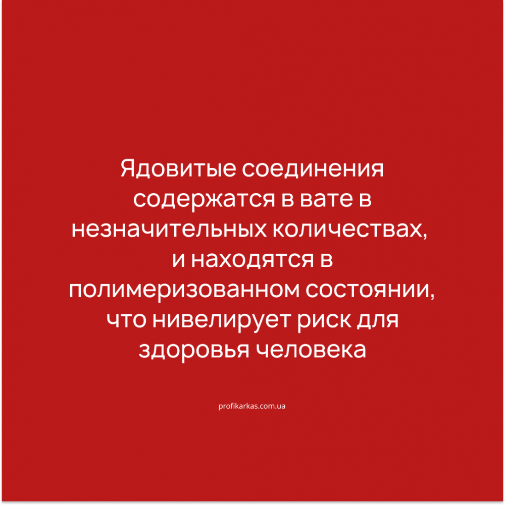 Важно отметить, что ядовитые соединения не только содержатся в ватте в незначительных количествах, но и находятся в полимеризованном состоянии, что нивелирует риск для здоровья человека. Таким образом, опасность от этих веществ минимальна.