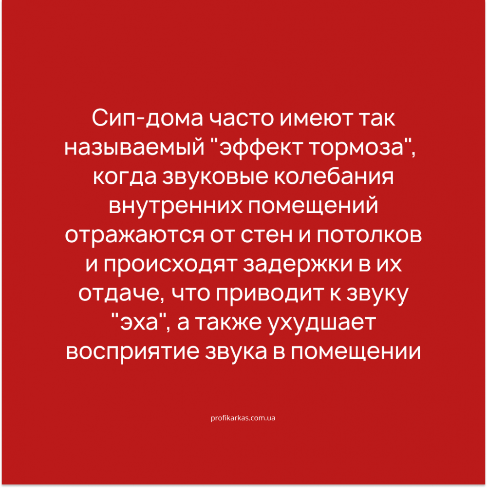Эффект "тормоза". Сип-дома часто имеют так называемый эффект тормоза, когда звуковые колебания внутренних помещений отражаются от стен и потолков и происходят задержки в их отдаче. Это приводит к звуку "эха", а также ухудшает восприятие звука в помещении. |