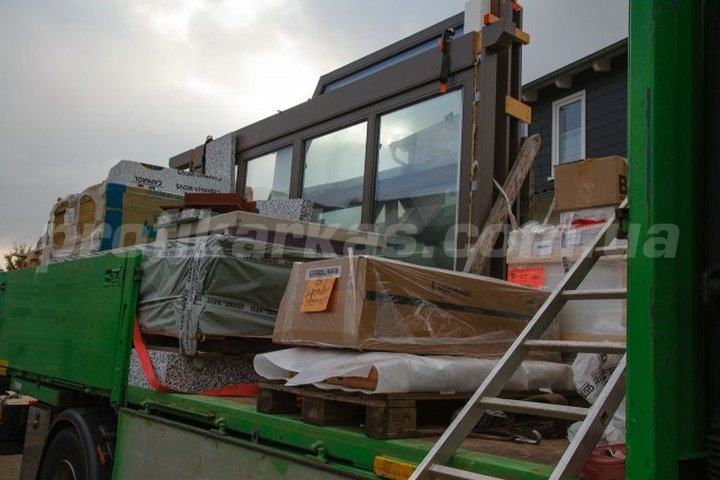 Привезли готовые стены. В них уже были окна, розетки и гипсокартон с внутренней стороны. Вот они пошли, преимущества сборных домов)