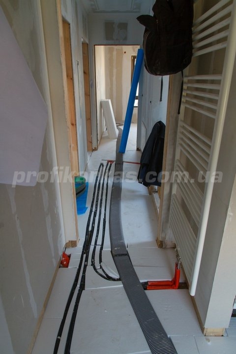 Сделали зонирование. Рядом с окном трубы уложены чаще