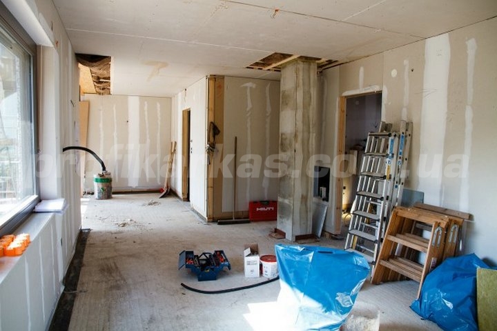 На чистовую шлифовку потолков и стен ушло две недели. Они были зашлифованы грубо